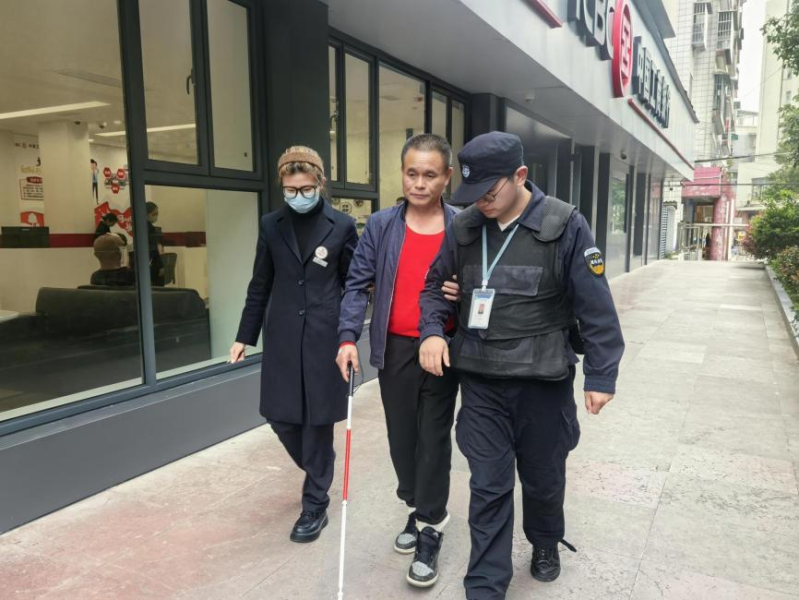 该行责任主说念主员戒备搀扶盲东说念主客户离开网点