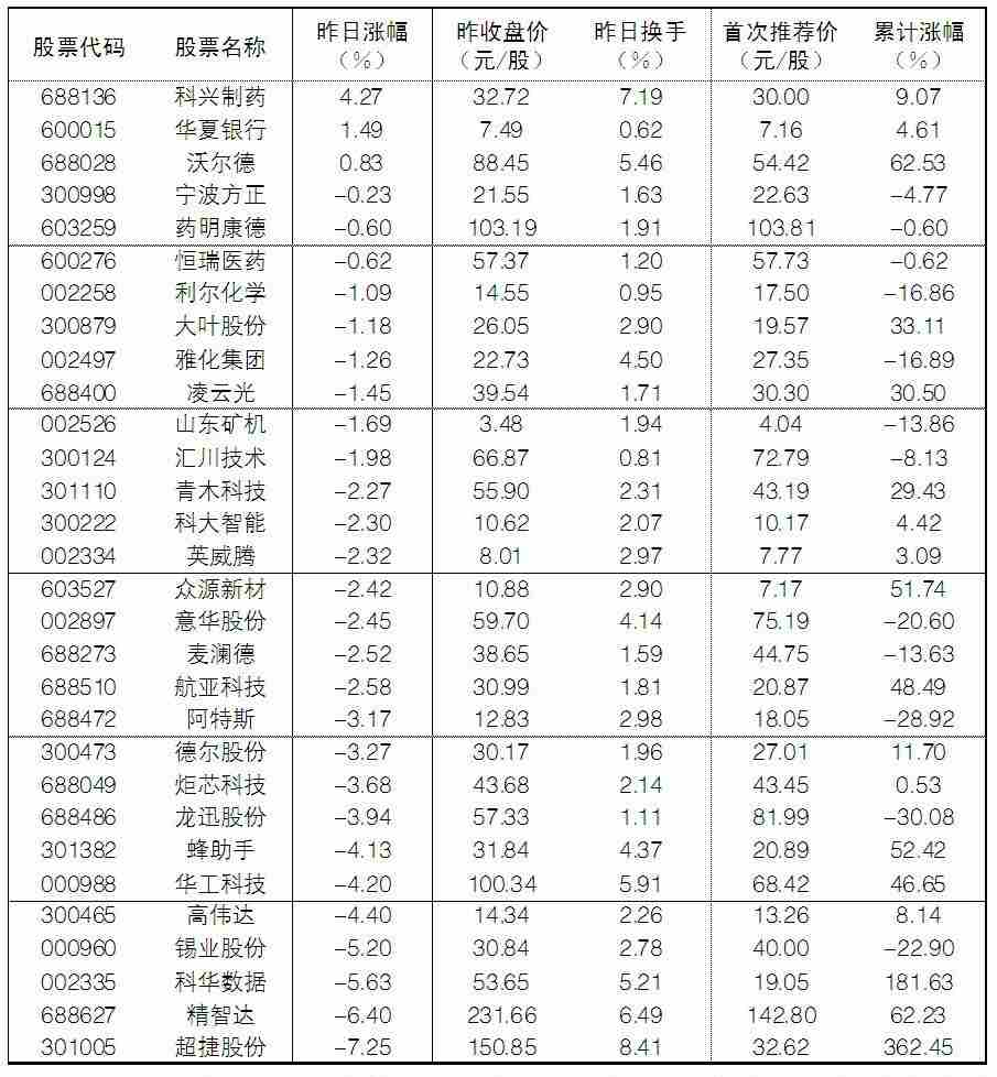 大众30指数成份股中,2日逆市高潮的分离是科兴制药、中原银行、沃尔德,涨幅分离为4.27%、1.49%、0.83%;跌幅榜上,超捷股份、精智达、科华数据、锡业股份等跌幅居前。